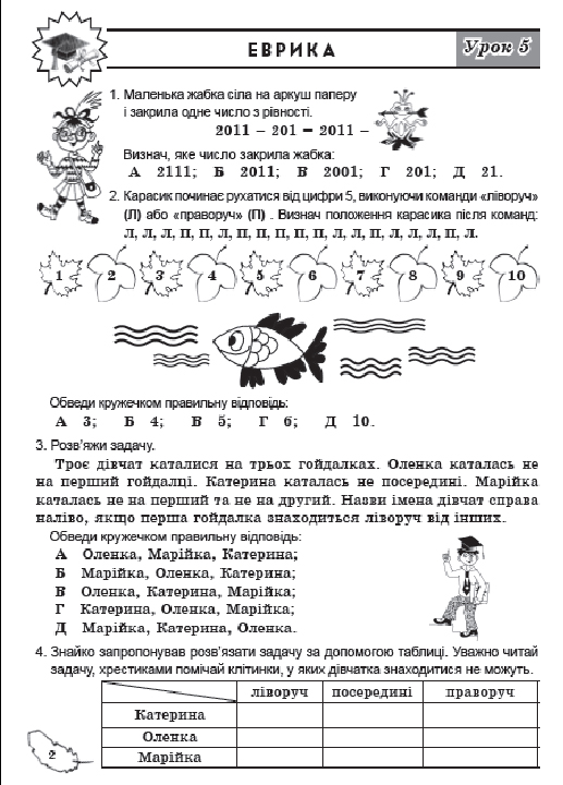 необязательный (к сожалению) предмет по выбору “Эврика”(заявляется, что этот предмет тренирует изобретательность, смекалку и логику) и обязательный предмет “Навчаємося разом” (заявляется, что предмет “учит учиться”, что на самом деле – об этом чуть ниже).В программе также